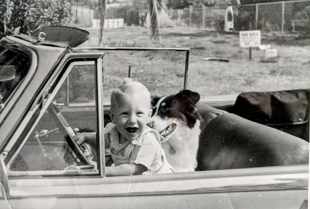 Our dad, Jeff, grew up in Southern California in the 50's, that's him driving the car with this favorite dog in the front seat. His mom would drop off him and his siblings at the beach with no sun protection. Jeff continued to make the outdoors a huge part of his life, sailing and working on boats. Perpetual over exposure of the sun has resulted in many, many Basal cell carcinoma surgeries. My brother and I teamed up with our dad to bring you a line of mineral sun protection because it's never too late to prevent skin cancer.